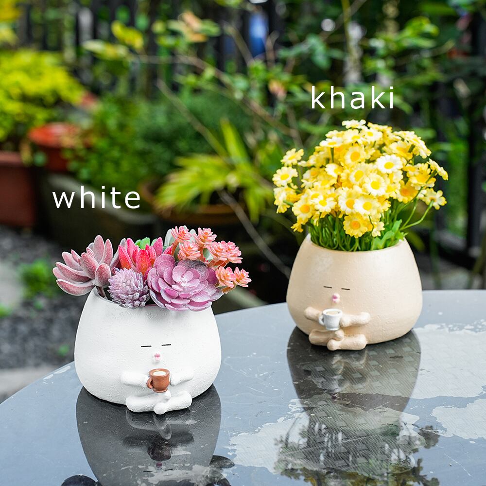 プランター かわいい顔 樹脂 鉢植え 植木鉢 カーキ ホワイト 白 ガーデンオブジェ ガーデニング 雑貨 ガーデン雑貨 ガーデンインテリア ガーデン インテリア 庭の装飾 お洒落 おしゃれ 8-14
