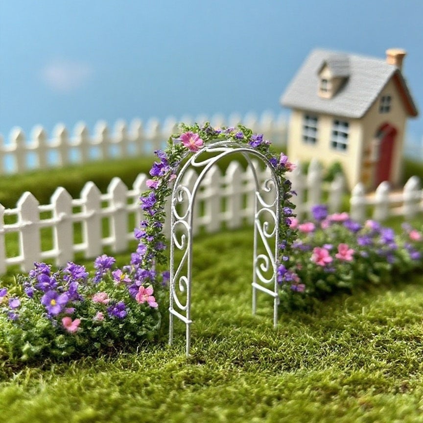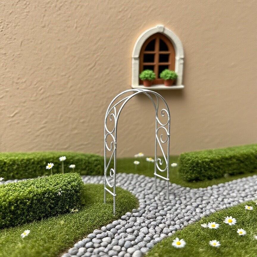 ガーデンオーナメント アーチ オブジェ ホワイト 錬鉄製 置物 ミニチュア 小さい かわいい ガーデニング 雑貨 ガーデン雑貨 ガーデンインテリア ガーデン インテリア 庭の装飾 お洒落 おしゃれ 8-14