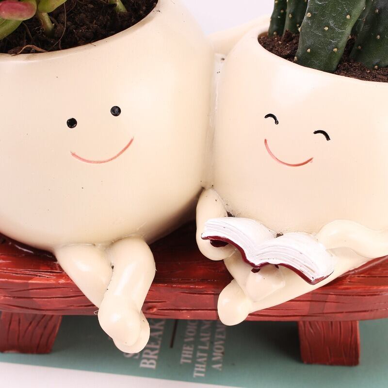 プランター 親子 樹脂 かわいい 可愛い顔 植木鉢 鉢植え ガーデニング 雑貨 ガーデン雑貨 ガーデンインテリア ガーデン インテリア パティオ 庭の装飾 バルコニー お洒落 おしゃれ 耐久性 デコレーション 8-14