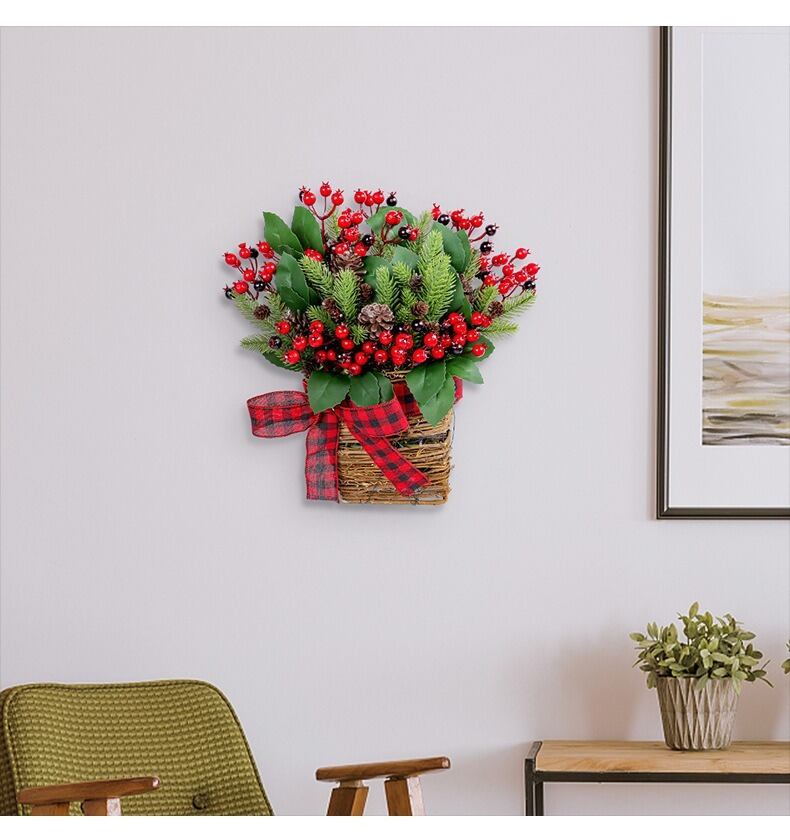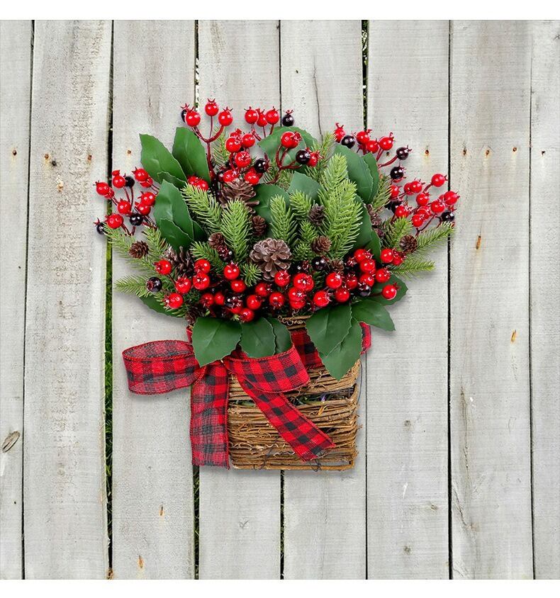 ドア飾り 吊り下げかご 松ぼっくりとフェイクリーフ 庭 ガーデン お洒落 クリスマス 赤 レッド グリーン かわいい フェイク 造花 ガーデニング 雑貨 ガーデン雑貨 ガーデンインテリア ガーデン インテリア 庭の装飾 お洒落 おしゃれ 8-14